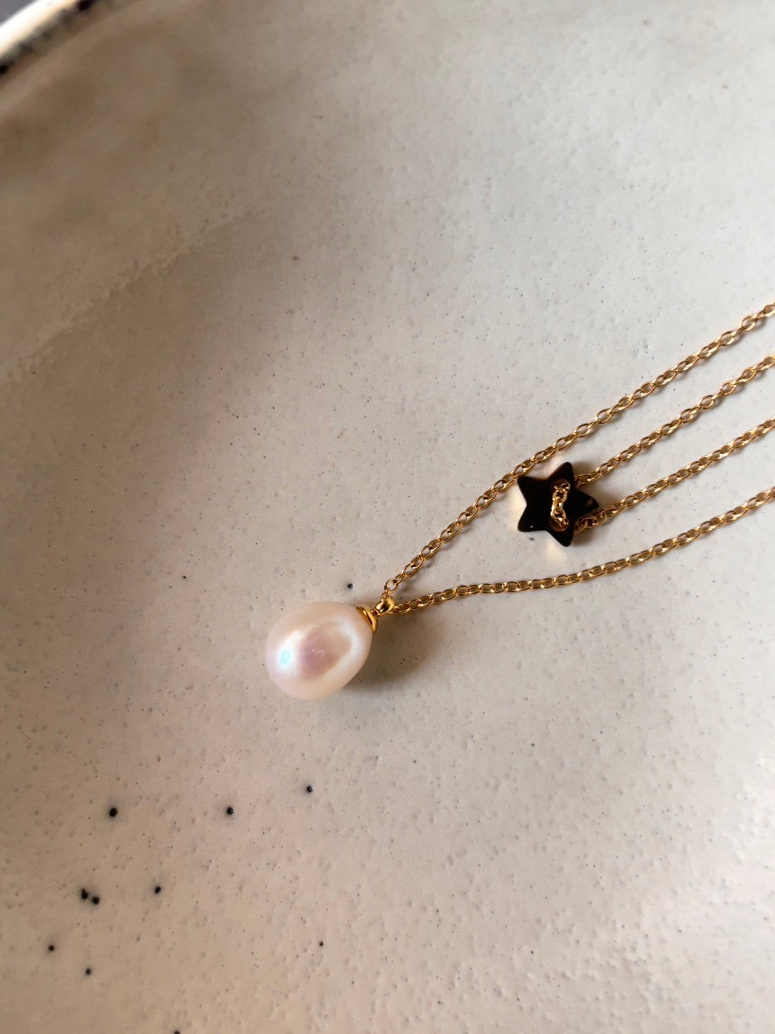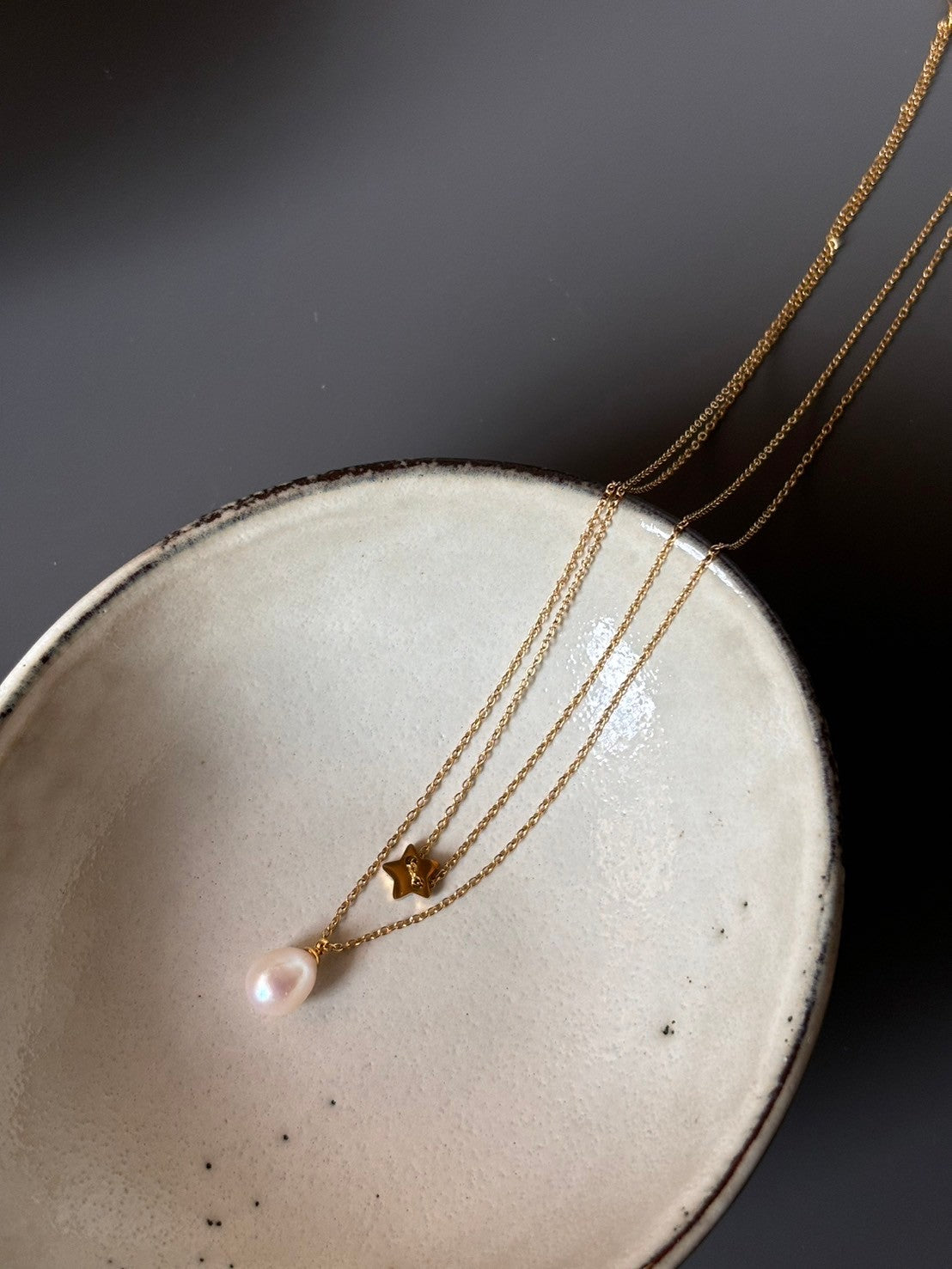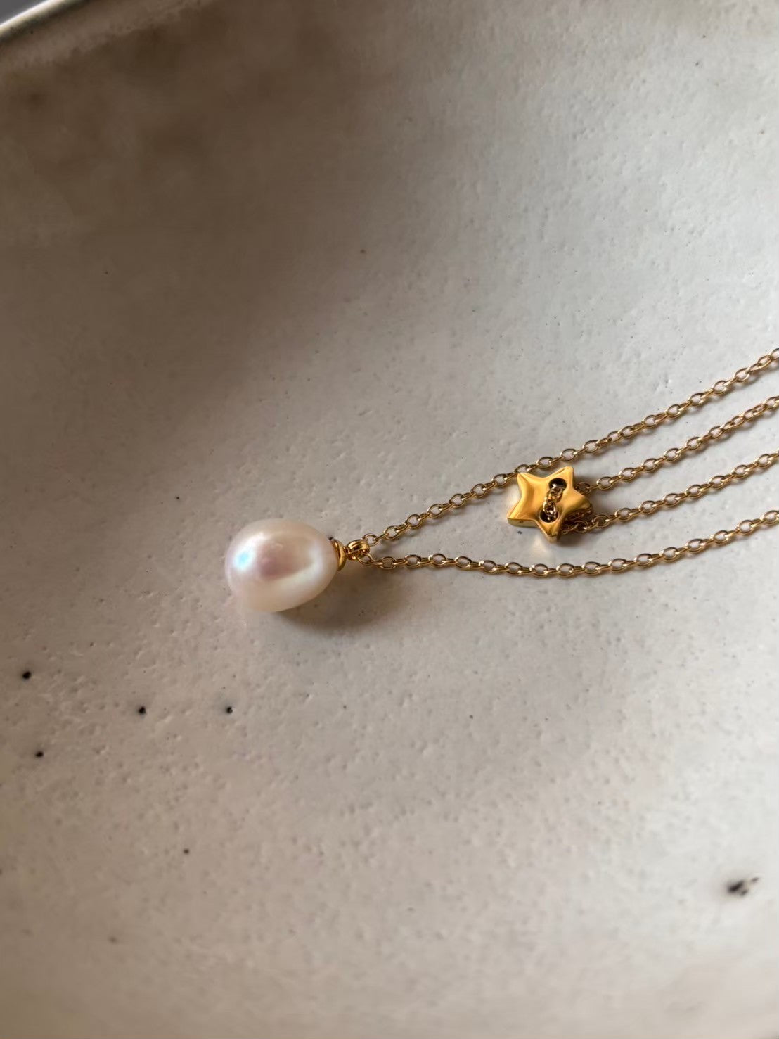 The combination of the first layer of small star pendants and the second layer of freshwater pearls adds a lively element of personality to the simplicity, making the outfit never boring!