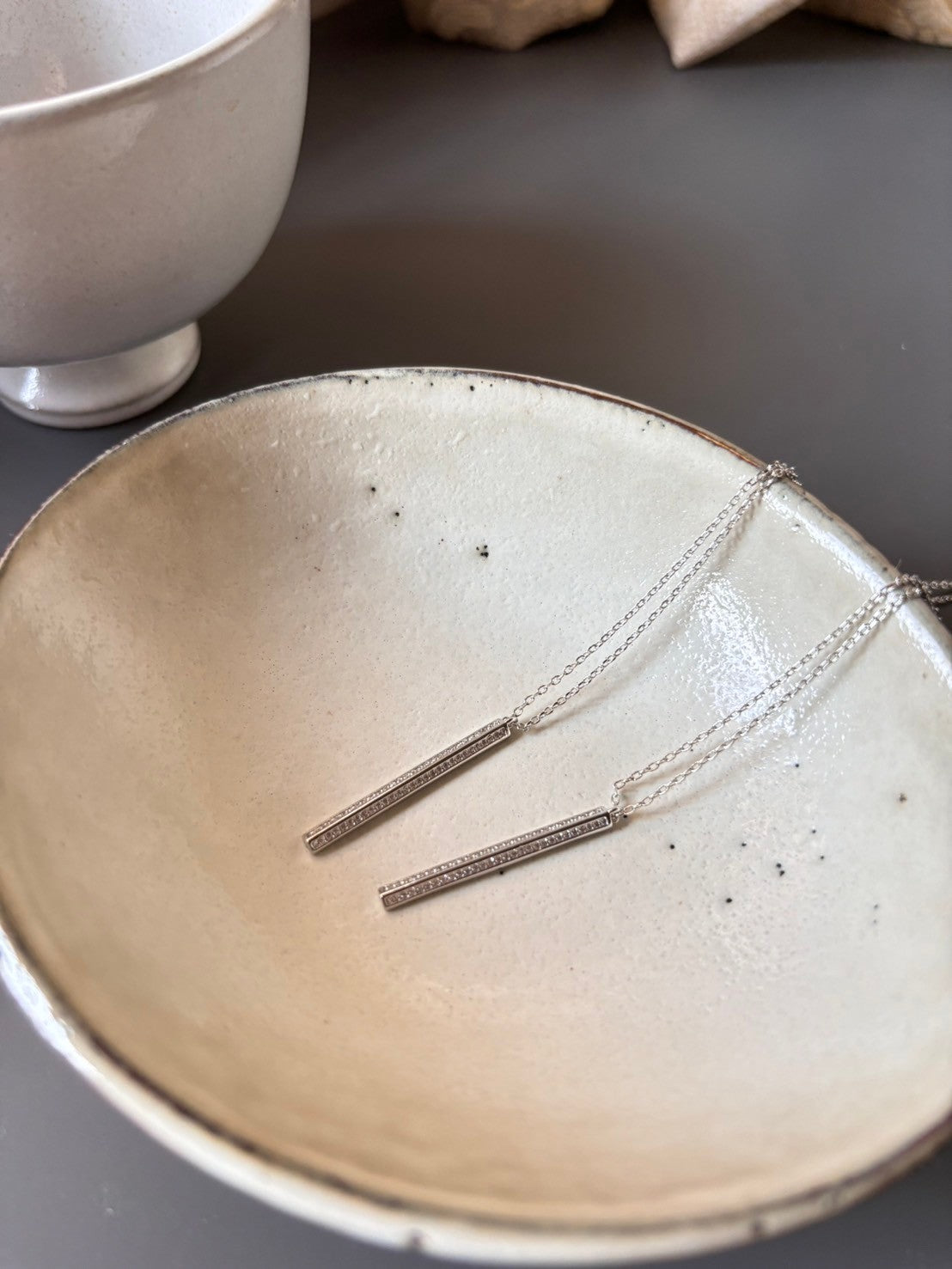 The slim crystal pendant looks simple and elegant when worn alone, but it is also very suitable for stacking and complementing other pendants.
