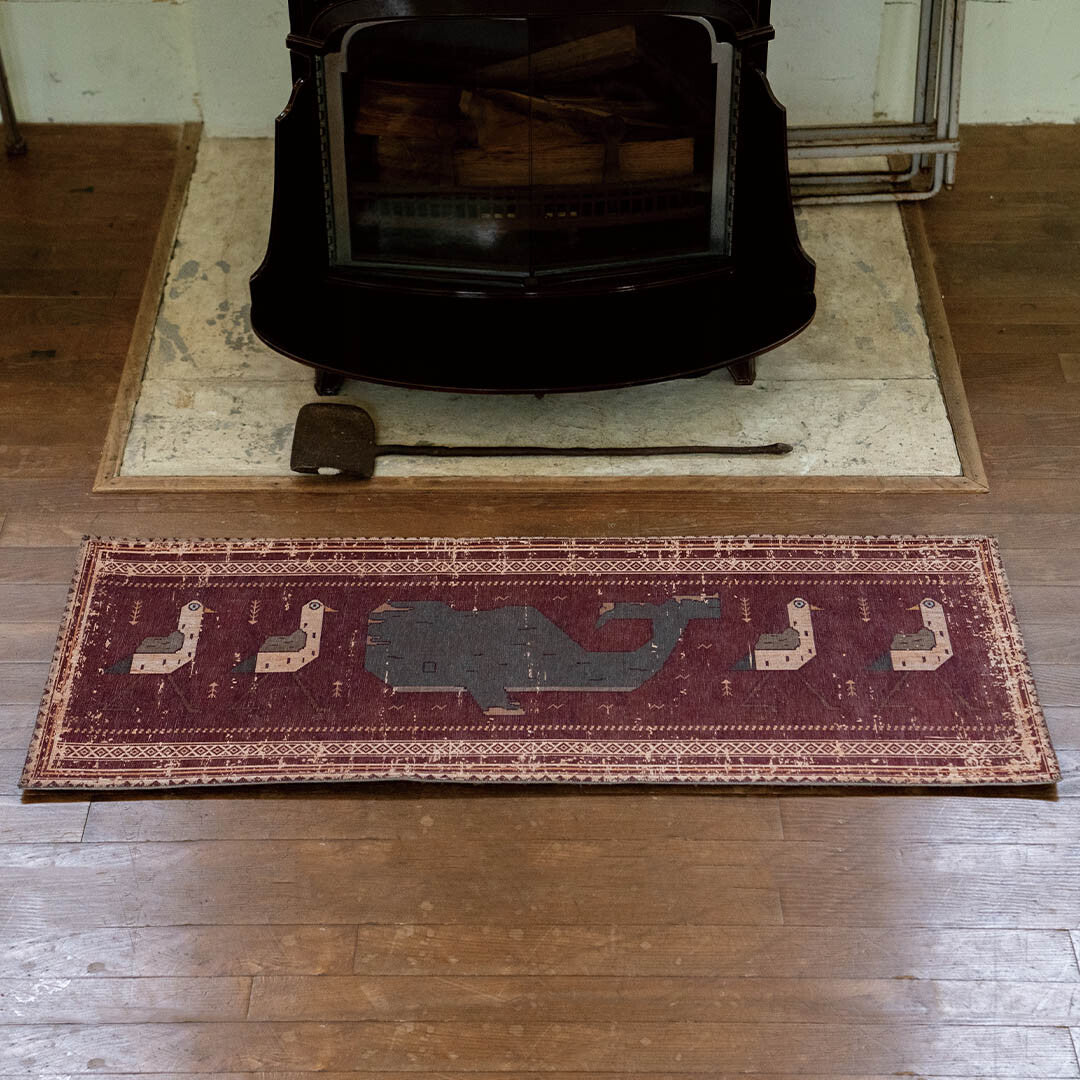 DULTON 復古作舊圖紋長形地毯 (鯨與海鷗)